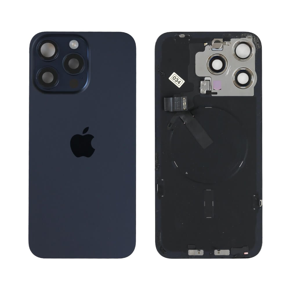 Genuine iPhone 15 Pro Max - Back Glass With Wireless NFC Charging MagSafe Magnet & Flashlight Flex - Blue - Reclaimed