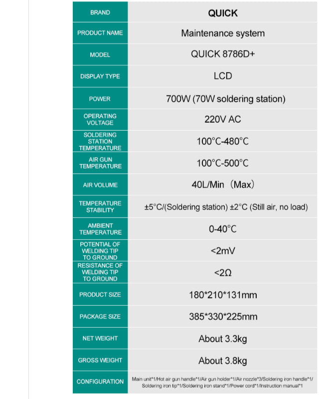 QUICK 8786D+ desoldering station soldering station Double station 2 in 1 rework station 110v/220v